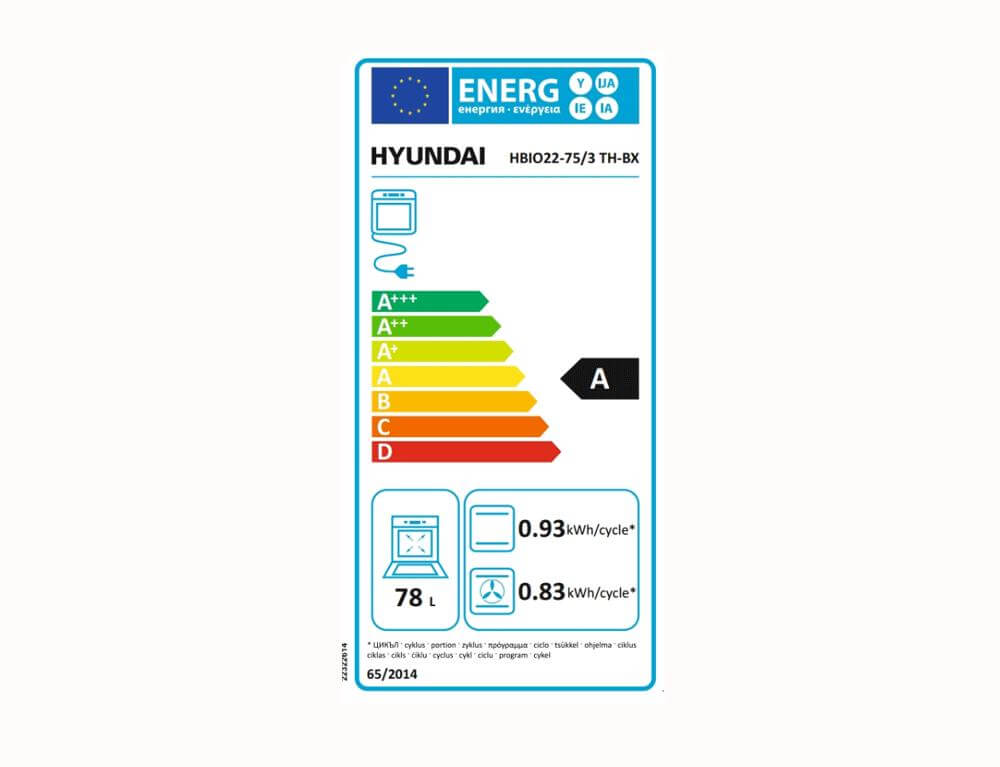Εντοιχιζόμενος φούρνος Hyundai HBIO22-75/3 TH-BX με χωρητικότητα 78L και ενεργειακή κλάση Α