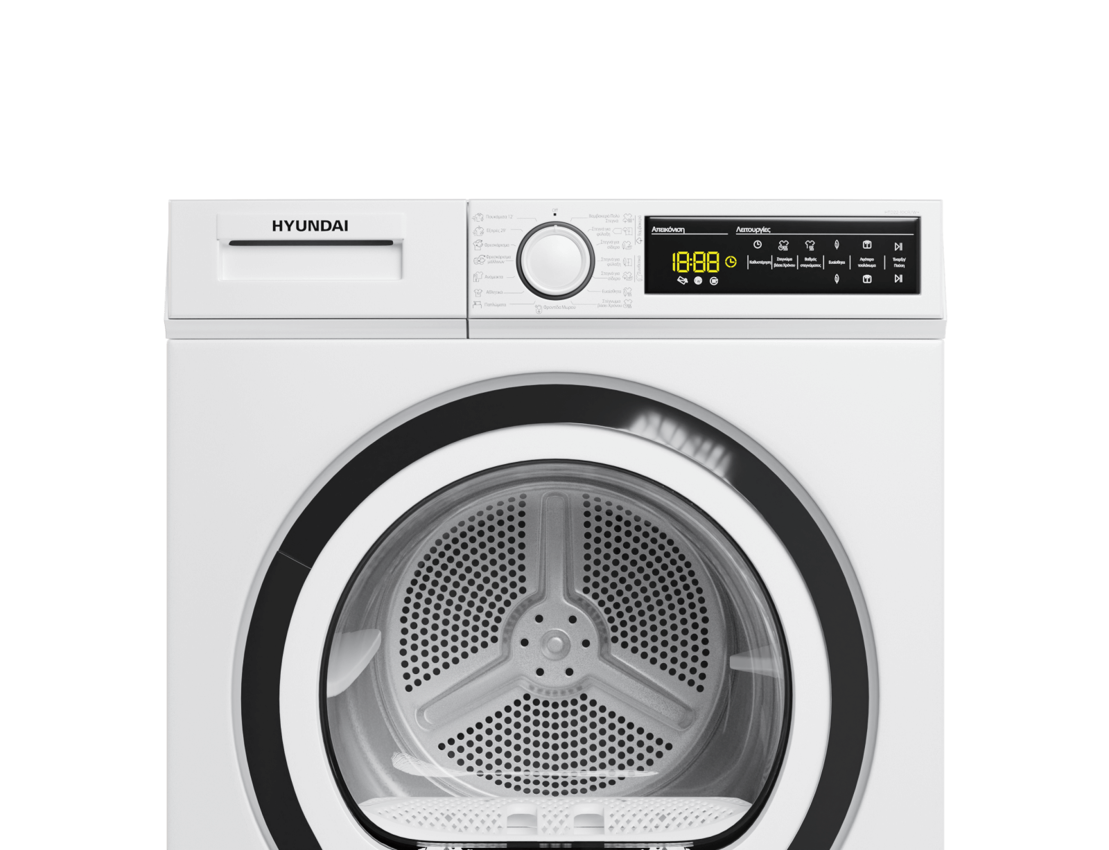 Το νέο ελεύθερο στεγνωτήριο, 10 κιλών Hyundai HTD22-10CR/W+ διαθέτει 15 διαφορετικά προγράμματα στεγνώματος και λειτουργία Child lock.
