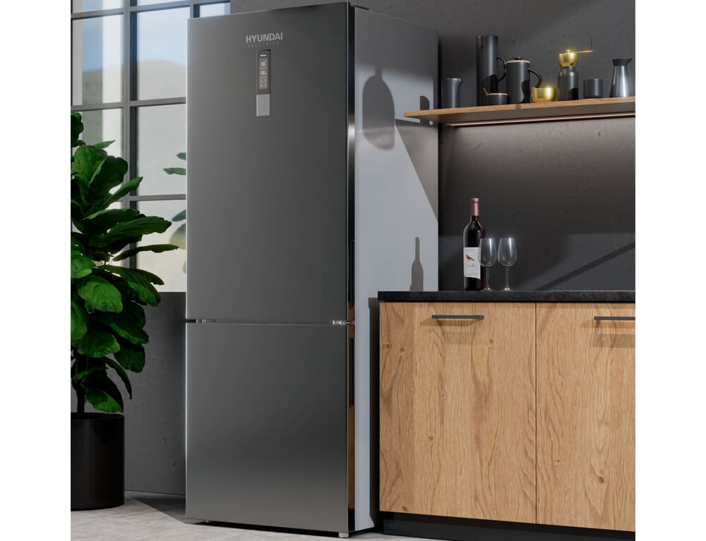 Ψυγειοκαταψύκτης Hyundai HRC23-4722DXWDG/NF με απλό σχεδιασμό σε dark inox χρώμα, μεγάλη χωρητικότητα τροφίμων που φθάνει τα 442 λίτρα και υψηλή απόδοση E για εξοικονόμηση ενέργειας. Επιπλέον διαθέτει τεχνολογία Total No Frost για μεγαλύτερη φρεσκάδα και