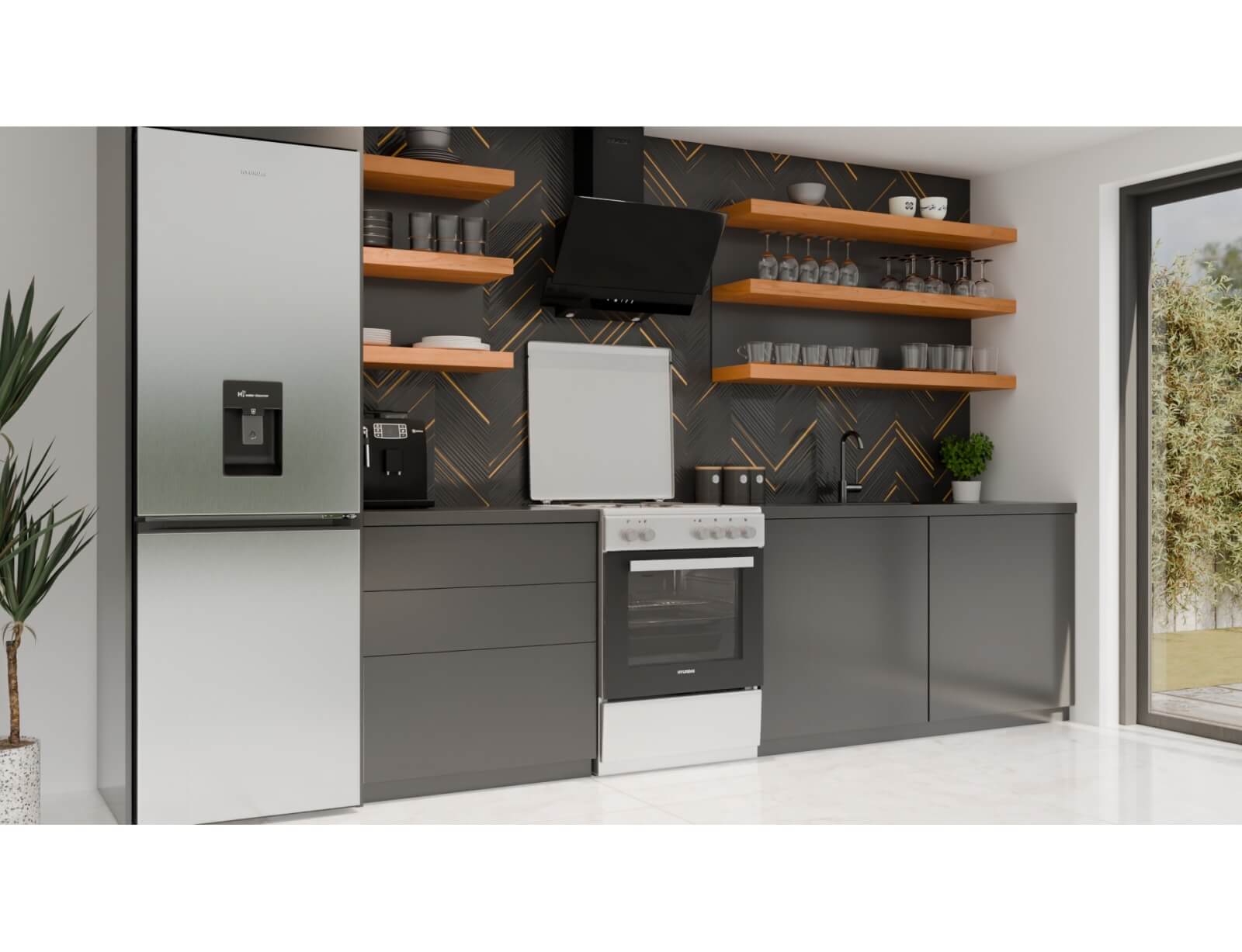 Κουζίνα Hyundai HCMU24V-7260E/S με ηλεκτρικό φούρνο, εμαγιέ εστίες, χωρητικότητα φούρνου 69L, 5 λειτουργίες ψησίματος και ενεργειακή κλάση Α