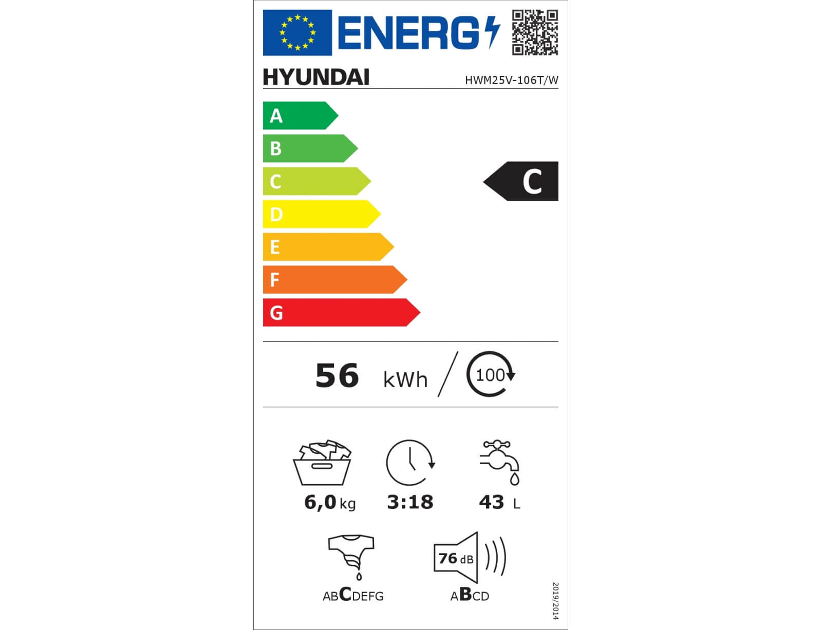 Πλυντήριο ρούχων Hyundai HWM25V-106T/W με χωρητικότητα 6kg, 1000rpm και ενεργειακή κλάση C