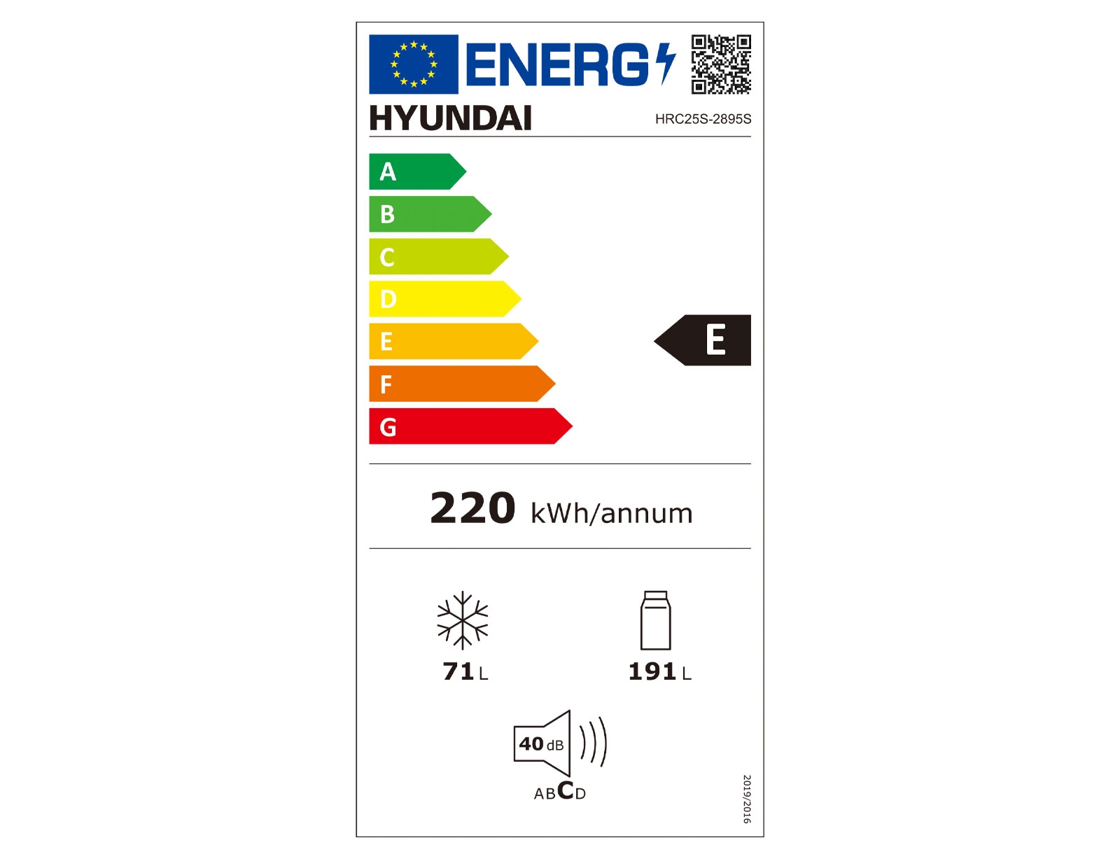 Home -> Ψύξη -> Ψυγειοκαταψύκτης Hyundai HRC25S-2895S Total No Frost με Συνολική Χωρητικότητα 262L, Ενεργειακή Κλάση E και Ύψος 178.9 cm